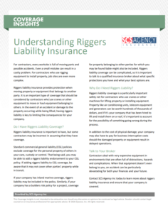 Riggers liability insurance provides protection when moving property or equipment that belongs to another party. In the event of an accident or damage to the property occurring while being lifted, having riggers liability is key to limiting the consequences for your company.