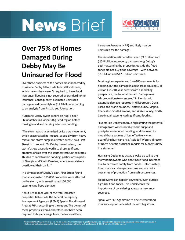 Many homes affected by Hurricane Debby were outside federal flood zones and uninsured, leading to billions in potential losses. This article reveals the significant financial risks of inadequate flood coverage and why even properties outside high-risk areas need to reconsider their insurance options. Download now to understand the importance of comprehensive flood protection and how to safeguard your assets from unexpected disasters.